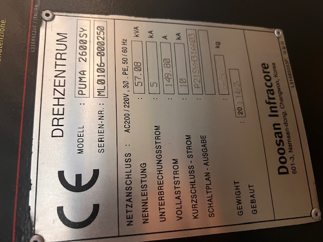 Tornio CNC DOOSAN PUMA 2600SY VENDUTO